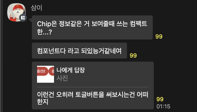 수많은 옵션을 구현하기 적합하다고 판단해서 chip를 선택했지만 체크박스나 라디오박스처럼 클릭 시