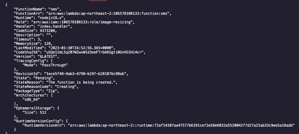fileb://sms.zip --handler index.handler --runtime nodejs18.x