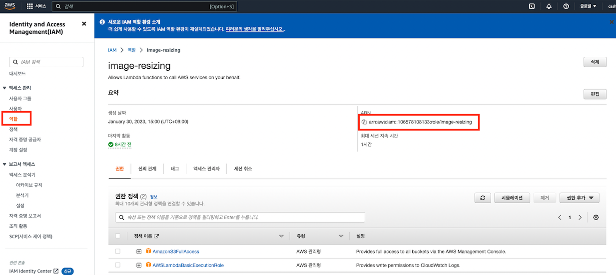 위에 role 자리에 들어갈 arn코드는 아래에서 확인할 수 있다.
