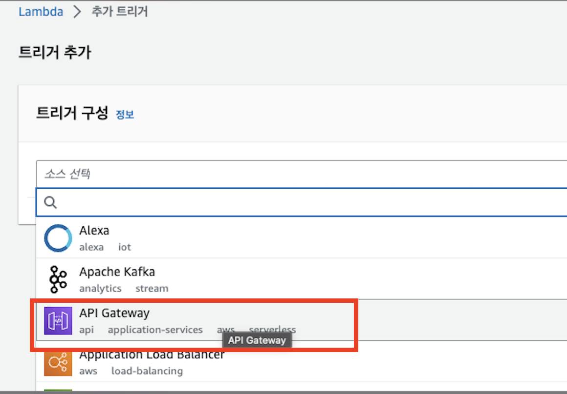 여기서는 AWS에서 제공하는 API GATEWAY서비스를 이용할 거다.