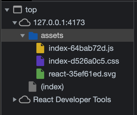 빌드시 번들링이 진행되면서 파일의 개수가 확 압축되었다.